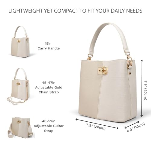 • Vegan Leather & Premium Materials - Crafted from selected, high-quality vegan leather, our leather bucket bag not only provides an elegant look, but is durable and water-resistant at the same time. It also comes in a variety of popular colors to choose from, features elegant gold-tone hardware throughout the body of the handbag, finished with a premium fabric interior. Designed for easy access to your items, you’ll find yourself reaching for this crossbody bucket handbag time and time again.
