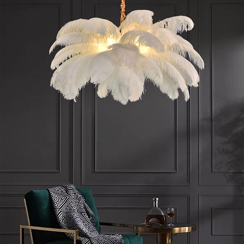 LED Pendant Light Chandelier Gorgeous Extra Large White Ostrich Feather Bouquet Pendant Light Romantic Mounted Lighting Fixture for Restaurant Bedroom Chain Adjustable 23