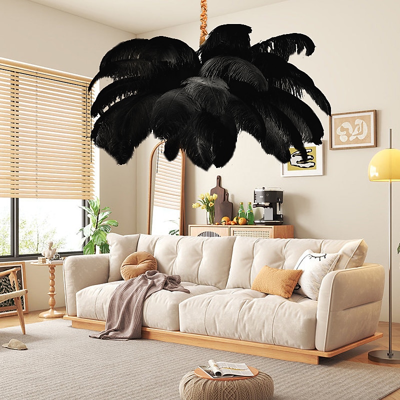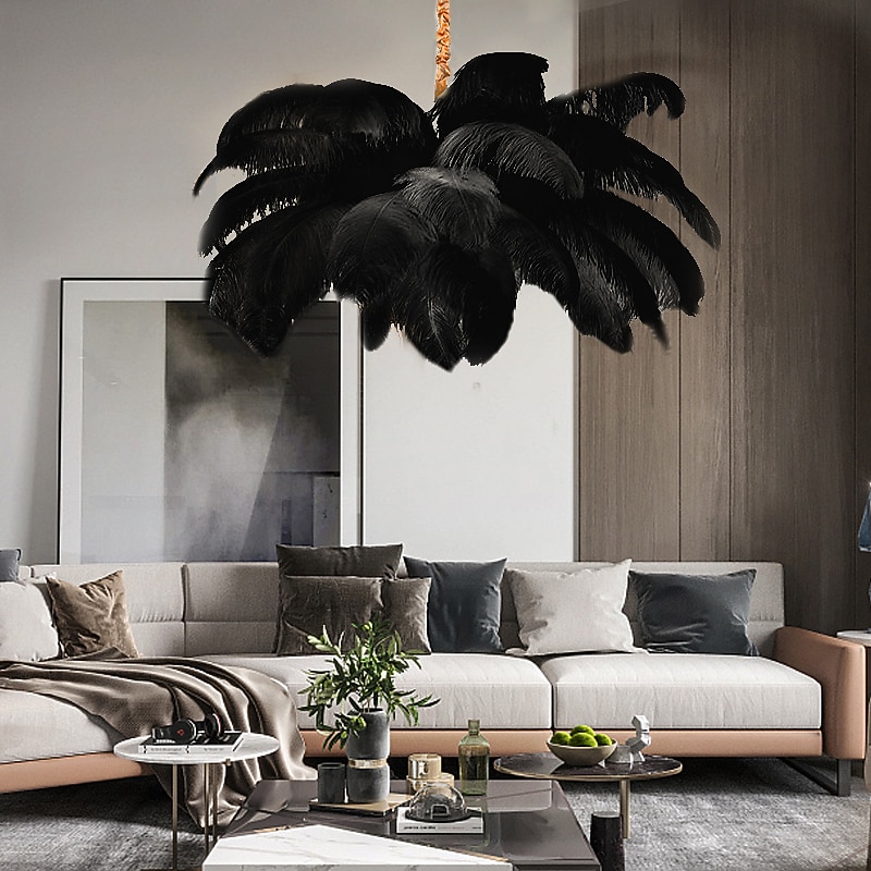 LED Pendant Light Chandelier Gorgeous Extra Large White Ostrich Feather Bouquet Pendant Light Romantic Mounted Lighting Fixture for Restaurant Bedroom Chain Adjustable 1