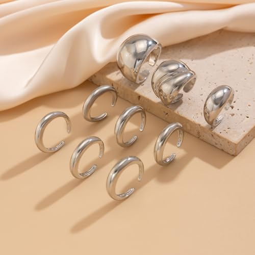 Rings for Women Chunky Rings Set Adjustable Thick Dome Statement Ring Wide Thin Stacking Ring for Women Chunky Jewelry 7