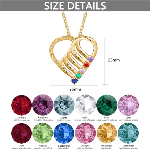 • Design for love: This heart name birthstone necklace is inlaid with high-quality Austrian birthstones,can be customized with 5 birthstones and 5 names of your choice. A special piece of jewelry you can own or give as a gift to your special someone to say I Love You.
