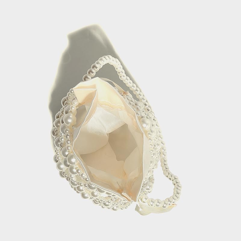Cute Crossbody Bag Pearl Purse, Fashion Sling Handmade Pearl Beaded y2k Handbags Chic Ladies Hobo Beaded Shoulder Bag (Cream) 5