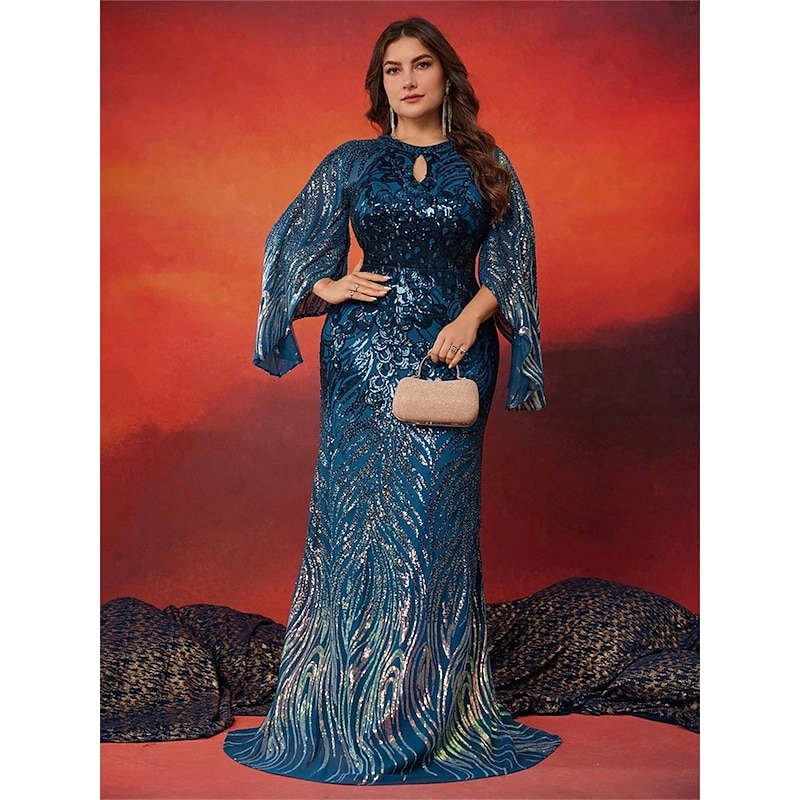 More information about Mermaid / Trumpet Plus Size Dresses Elegant Curve Dress Formal Wedding Floor Length Long Sleeve Crew Neck Polyester with Slit