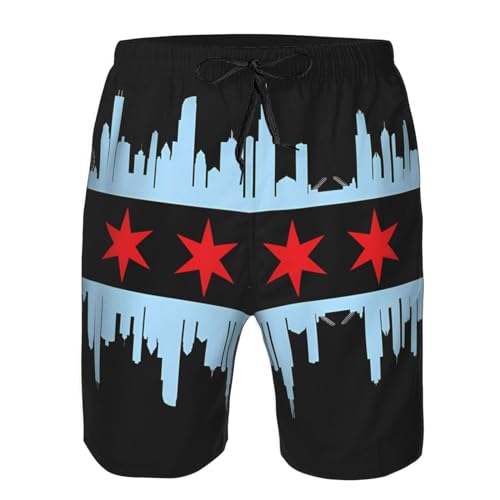 More information about Chicago City Flag Skyline Men's Beach Shorts Drawstring Running Athletic Shorts Loose Shorts