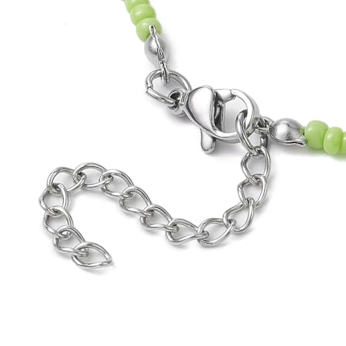 1Pc Glass Seed Bead Beaded Flower Necklaces Spring Green Flower & Bees Beaded Necklace with 304 Stainless Steel Tail Chain 16.77 inch/42.6cm Long 8.5mm/0.33 inch Extender 42mm/1.65 inch 4