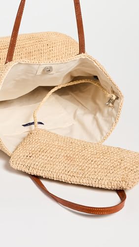 • Removable matching zip pouch , Leather top handles , Canvas lining , Open top with magnetic snap