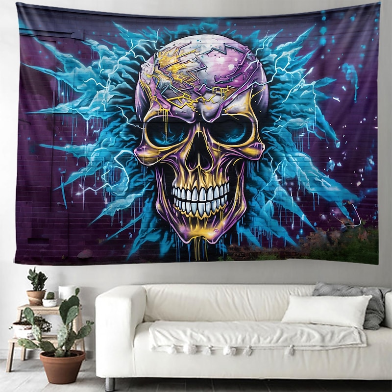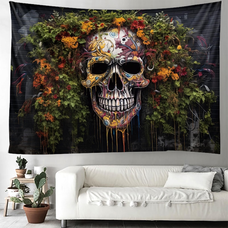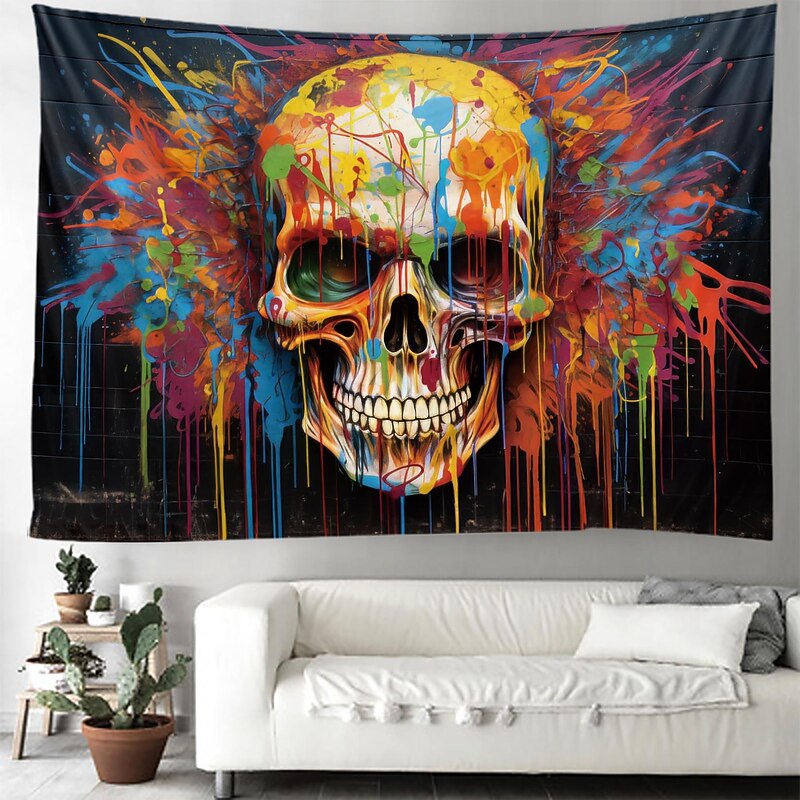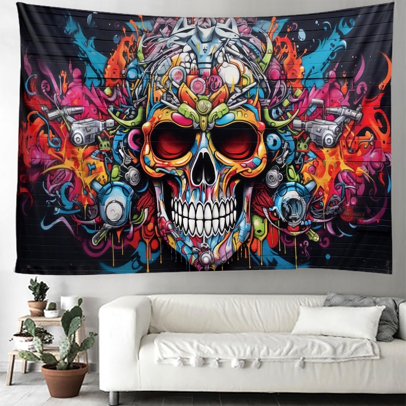 HOT ! Halloween Graffiti Skulls Hanging Tapestry Wall Art Large Tapestry Mural Decor Photograph Backdrop Blanket Curtain Home Bedroom Living Room Decoration Decorations
