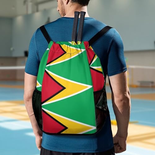 Guyana Guyanese Flag Drawstring Backpack Sports Gym String Bag Sackpack Water Resistant Pockets for Women Men 6