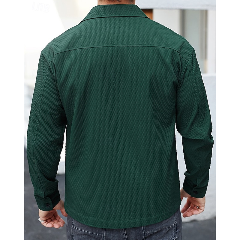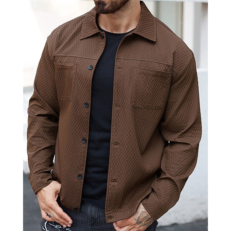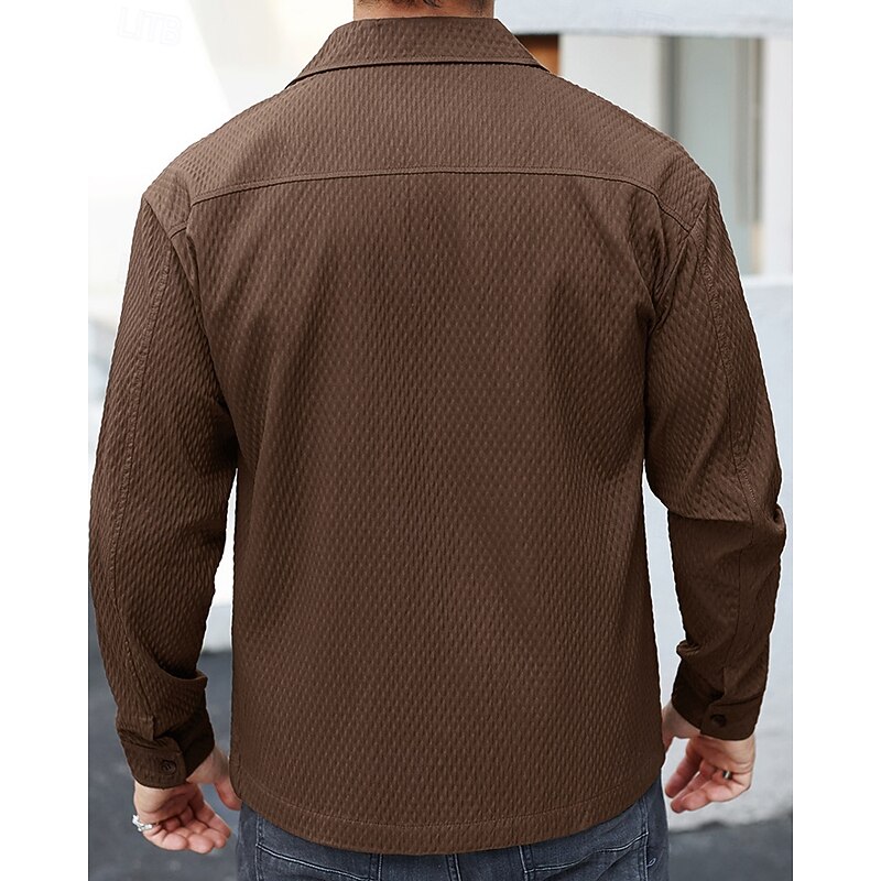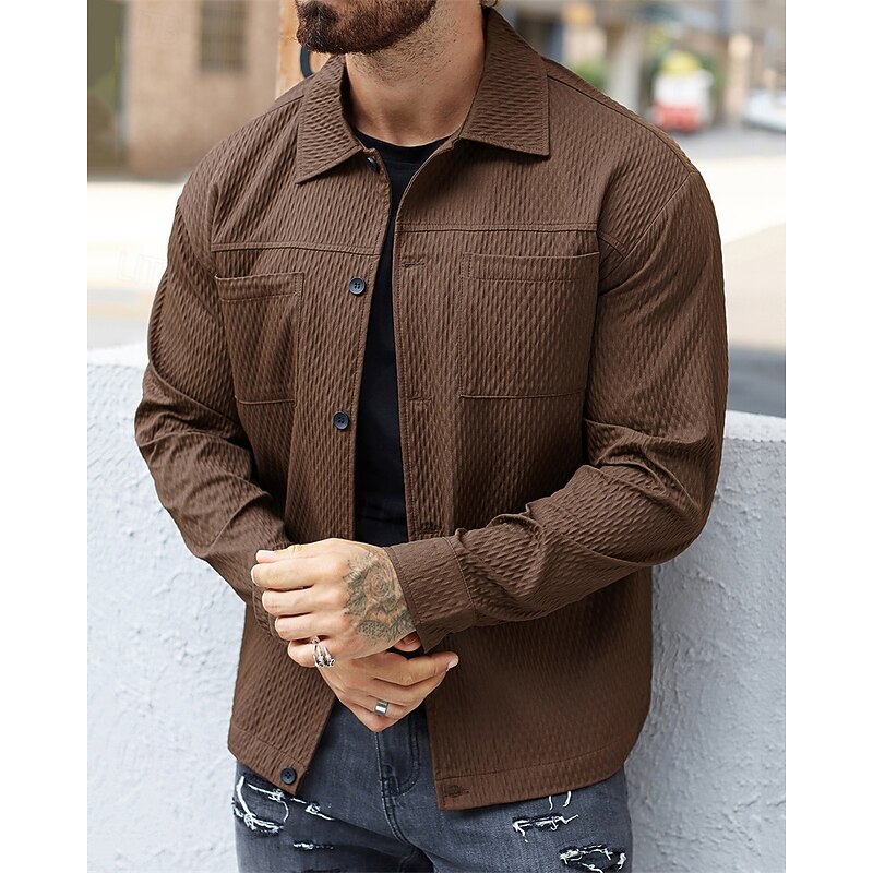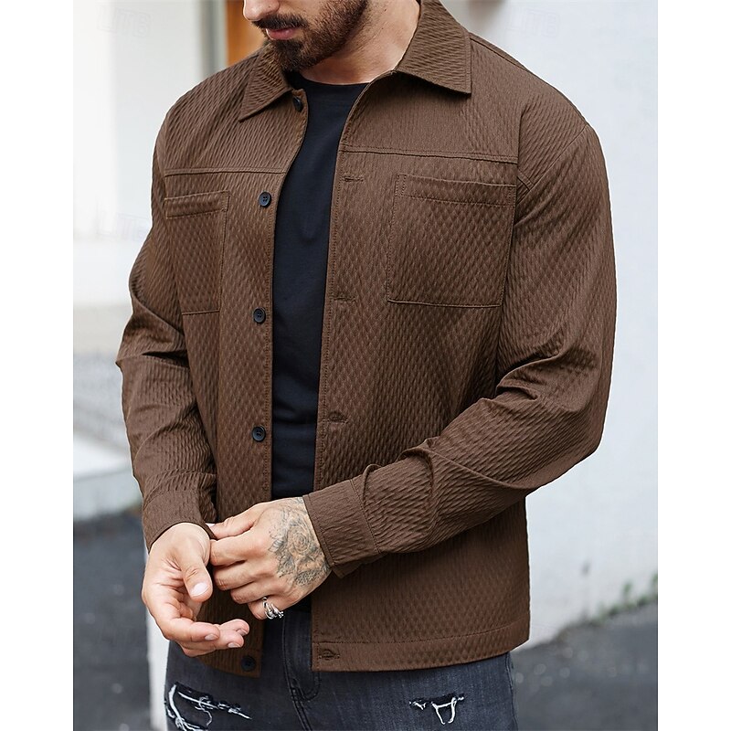 More information about Men's Lightweight Jacket Casual Jacket Vacation Daily Warm Pocket Jacquard Spring Fall Plain Fashion Classic Lapel Regular Dark Green Brown Jacket