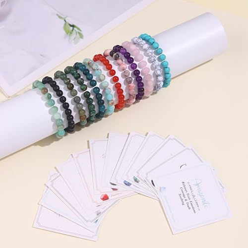 • Gemstone Beaded Bracelets: Crystal beaded bracelets are perfectly cut and polished by natural stones, with a traditional size of 8mm.Smooth surface and relaxing to wear, waterproof and serviceable.These bulk bracelets are 7.1inch and adopt an elastic design that can be adjusted to any size(up to 8.3 inches for comfort), suitable for most people's wrists