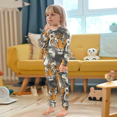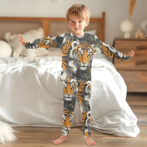Pajama Sets Long Sleeve Tiger Face with Leaves Soft Comfy Sleepwear 2 Piece PJS 3-8T 2