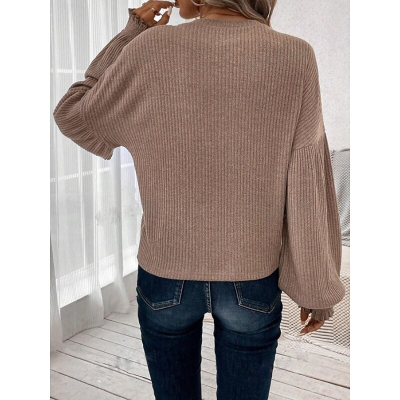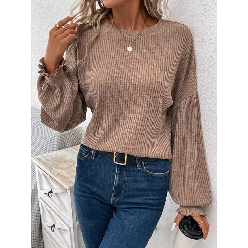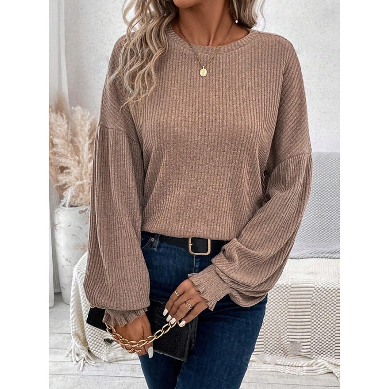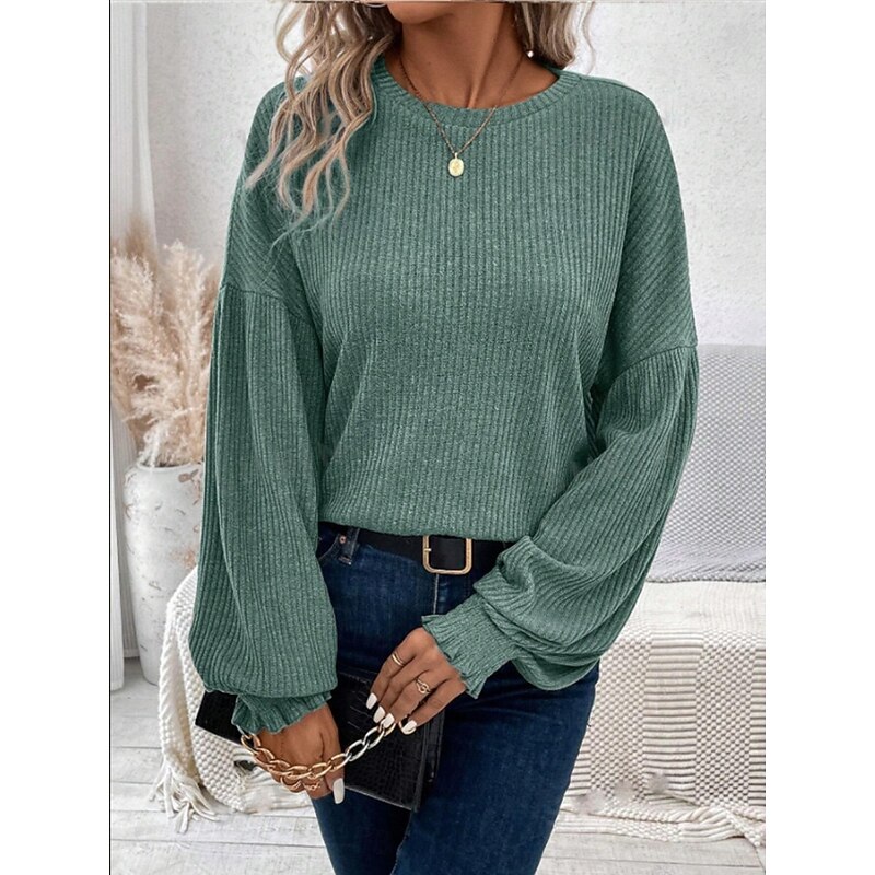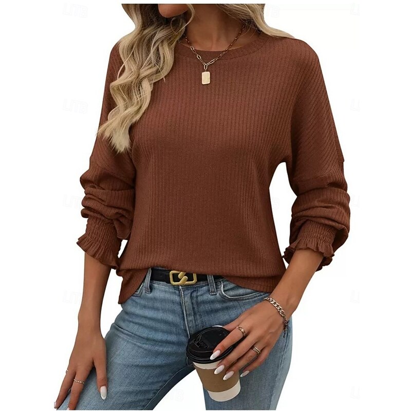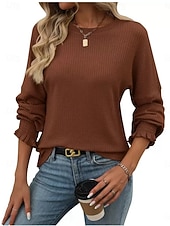 More information about Women's Blouse Solid Color Stylish Casual Long Sleeve Crew Neck Regular Tops Daily Ruched Black Army Green Brown Green Khaki Spring Fall Winter