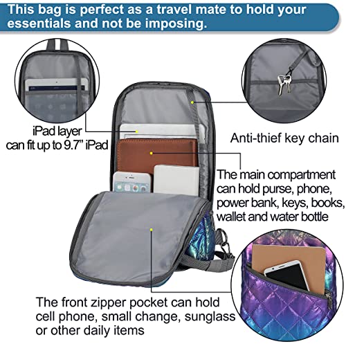 Iridescent Crossbody Shoulder Puffer Backpack for Women Men, Travel Hiking Small Chest Bag Daypack 6