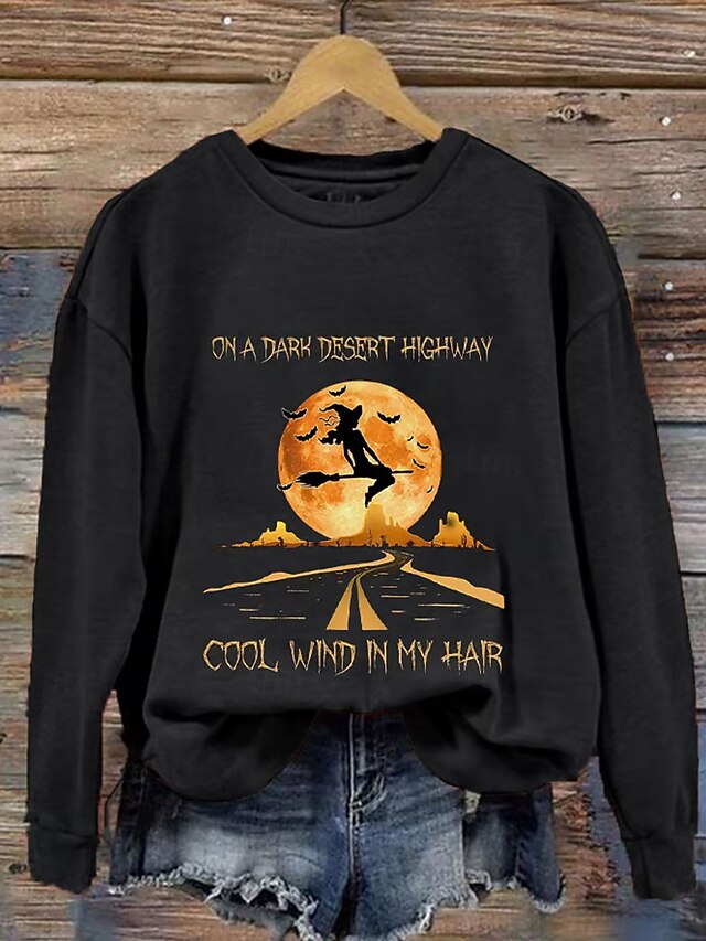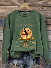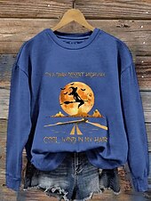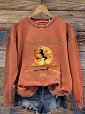 More information about Halloween Women's Sweatshirts Witch Graphic Letter Casual Long Sleeve Crew Neck Regular Tops Street Dailywear Casual Print Black Blue Orange Green Fall Winter