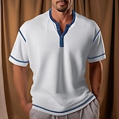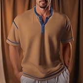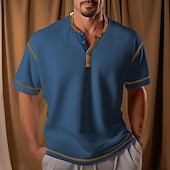 More information about Men's Waffle Henley Shirt Henley Shirt Tee Top Color Block Henley Street Vacation Short Sleeves Patchwork Knitted Clothing Apparel Polyester Fashion Designer Basic