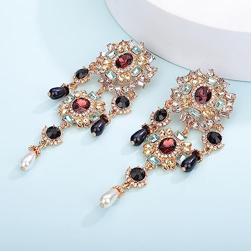 More information about Boho Fashion Punk Gothic Black Tassels Earrings Rhinestone Retro Pearls Statement Halloween Earrings Dangling Earrings Chandelier Long Drop Earrings for Women
