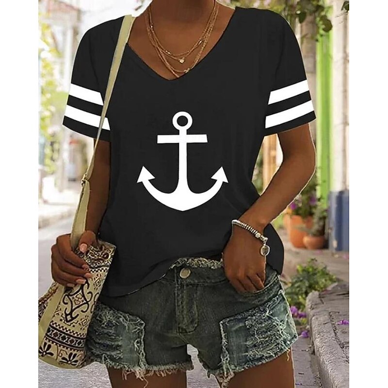 HOT ! Women's T Shirt Ocean Striped Casual Short Sleeve V Neck Regular Tops Daily Going out Weekend Print Black White Red Blue Green Summer