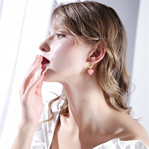 ONLYJUMP 14K Gold Plated Huggie Earrings For Women CZ Tiny Small Hoop Earrings Red Enamel Heart Ear Cuff Initial Huggies Earrings Minimal Jewelry 6