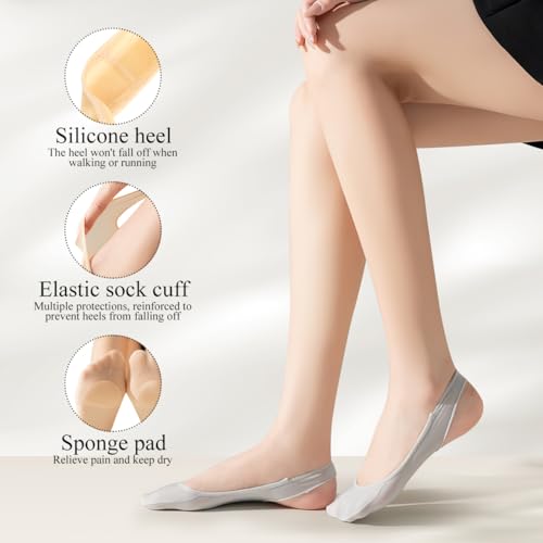DOITOOL 3 Pairs No Show Sling Back Socks Women Ultra Low Cut Liner Socks with Sling for Heels (Grey+Black+Complexion) 5