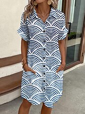 More information about Women's Mini Dress Shirt Dress Casual Dress Print Dress Fashion Modern Daily Beach Weekend Regular Fit Geometric Short Sleeve Shirt Collar Blue Summer Spring Fall Autumn