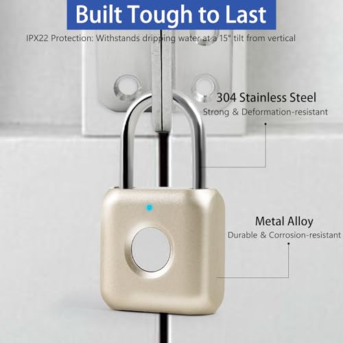 HOT ! Smart Fingerprint Padlock, Combination Lock with USB Rechargeable, Waterproof, Suitable for Toolboxes, Backpacks, Suitcases, Luggage, School, Gym Lockers, Gates, Gold