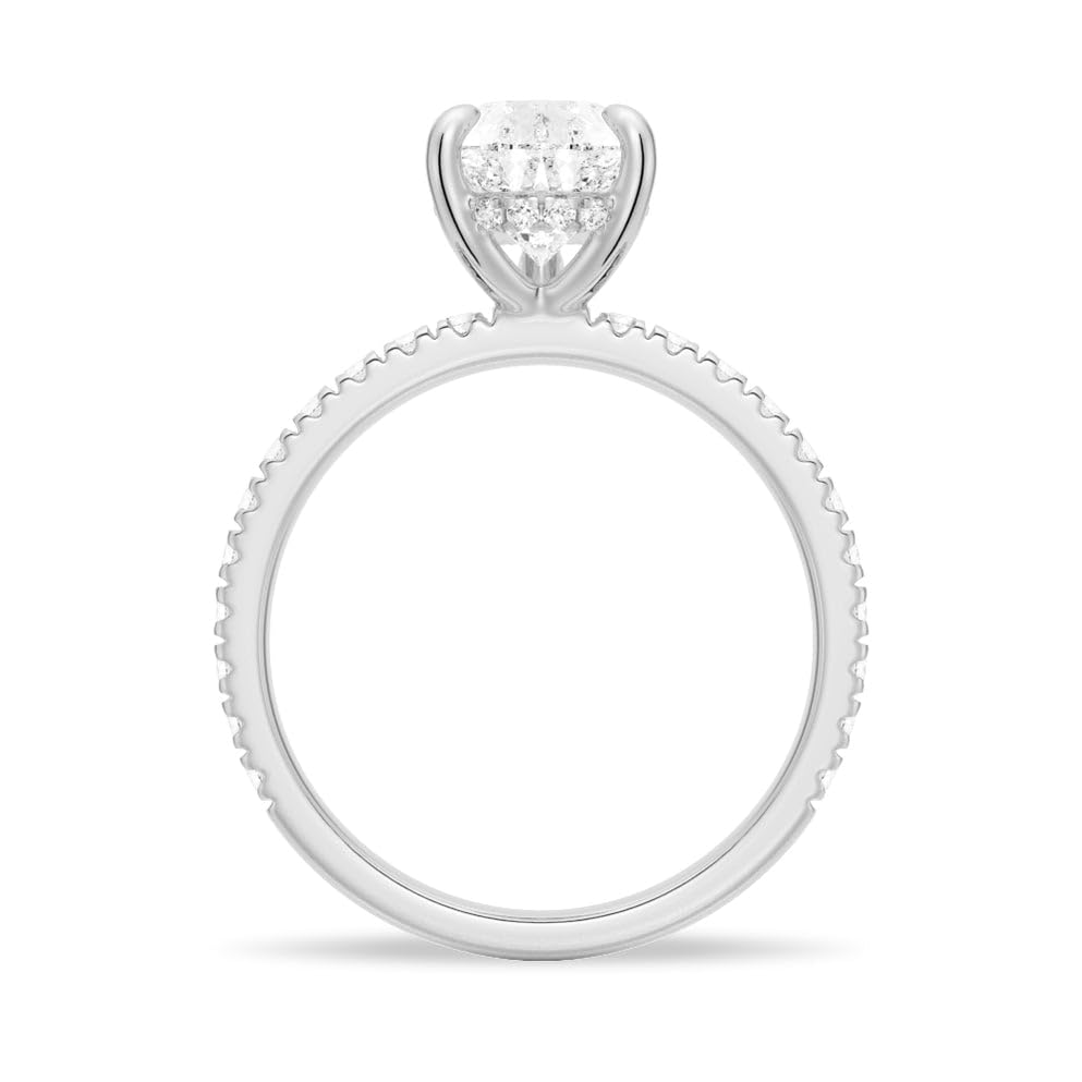 MSBLUE® Moissanite Engagement Ring, Solitaire Pear Shape with Pave and Hidden Halo, 14K Gold Vermeil, Rhodium Finished 6
