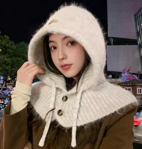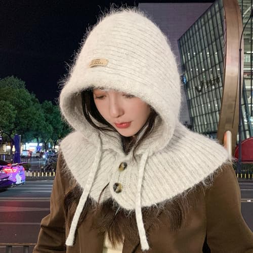 Scarf for Women Balaclava Beanie comfortable Knitted Hat Neck Gaiter Casual Versatile Loose Fit Woolen Wrap with Drawstring Button