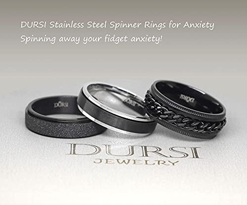 HOT ! DURIS 3 PCS Black Spinner Rings for Man Women Black Stainless Steel Fedget Worry Ring Set for Anxiety Engagement Wedding Band 6MM / 8MM