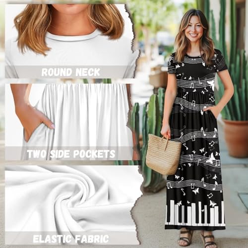 Womens Maxi Summer Dress with Pockets Crew Neck Casual Short Sleeve Sundress Trendy A Line Long Dresss Size S-4XL 1