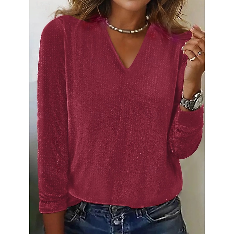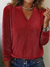 More information about Women's Shirt Blouse Plain Basic Modern Long Sleeve V Neck Regular Tops Daily Holiday Sequins Silver Black Yellow Pink Red Summer