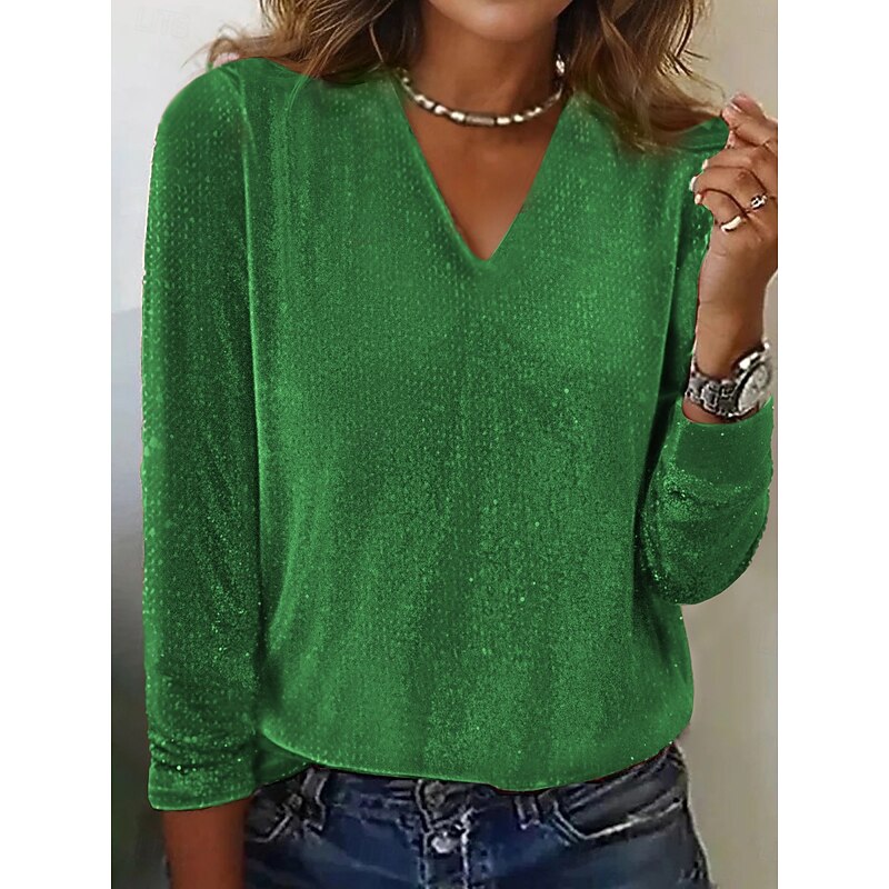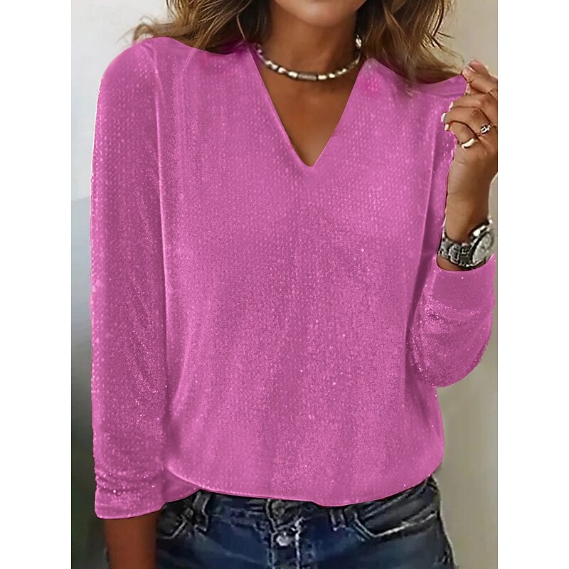 HOT ! Women's Shirt Blouse Plain Basic Modern Long Sleeve V Neck Regular Tops Daily Holiday Sequins Silver Black Yellow Pink Red Summer