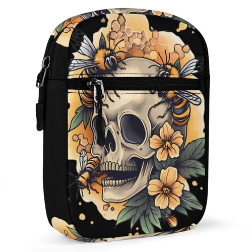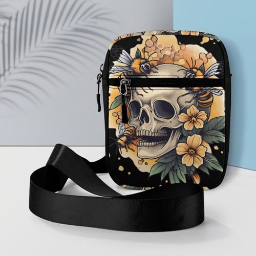 HOT ! Skull with Bees Flowers Women's Cute Small Mini Crossbody Bag Top Zip Sling Square Shoulder Bags