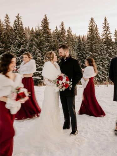 HOT ! Women’s Faux Fur Shawl and Wraps Bridal Fur Stole Ribbon Fur Cape Soft Faux Shawl for Bride and Bridesmaids