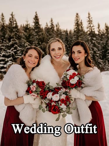 More information about Women’s Faux Fur Shawl and Wraps Bridal Fur Stole Ribbon Fur Cape Soft Faux Shawl for Bride and Bridesmaids