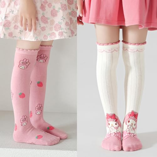 4 Pairs Knee High Socks for Girls & Women, Cute Cartoon Thicken Over Knee Stockings Cotton Long Socks Compression Stocks 15" 7