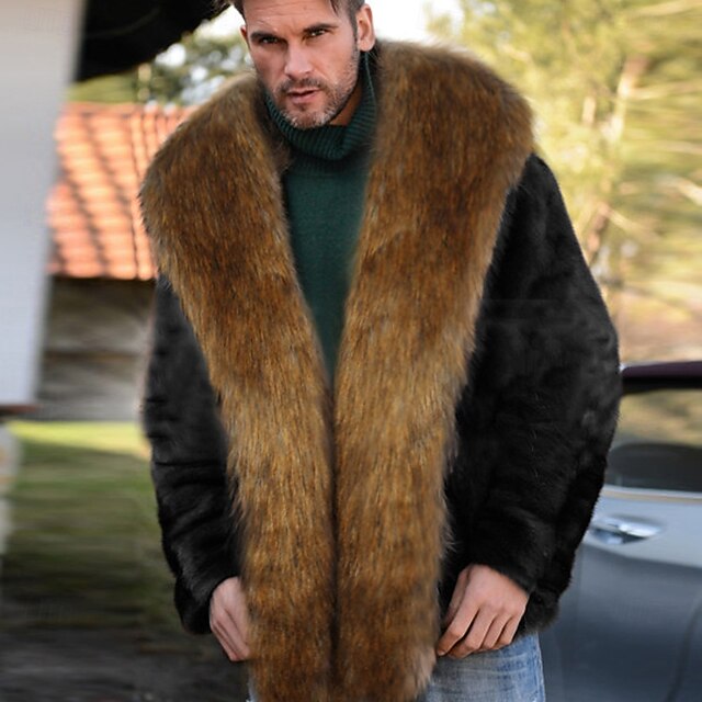More information about Men Fleece Jacket Faux Fur Coat Casual Windbreaker Faux Fur Trim Winter Solid Color Fashion Long Black Jacket