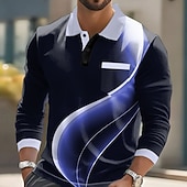 More information about Men's Geometric Line Polo Long Sleeve Polo Shirts Lapel Casual Business Casual Athleisure Daily Wear Pocket 3D Print Buttons Spring Fall Lake blue White Red