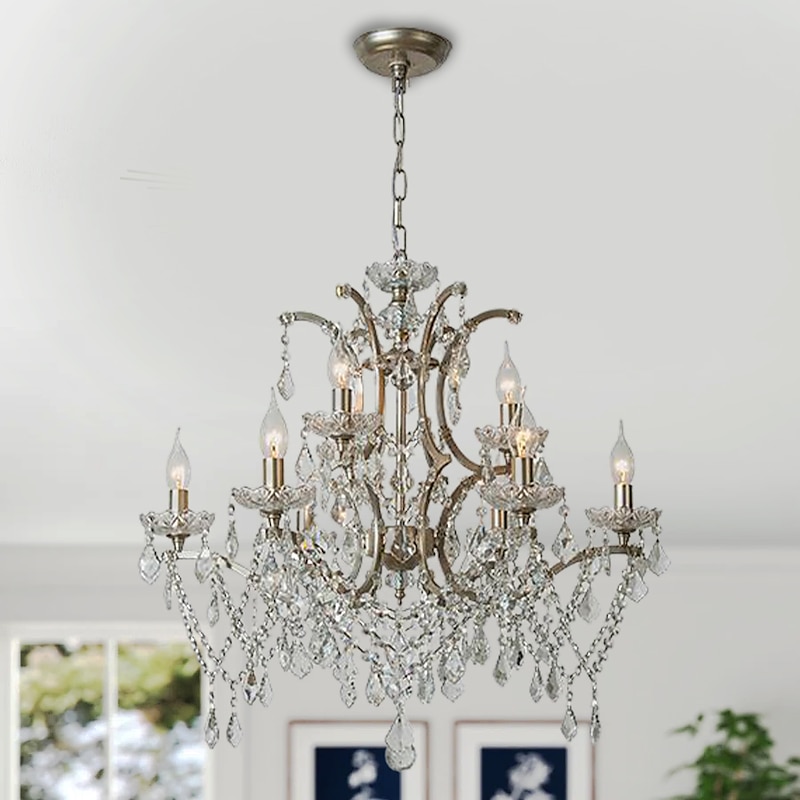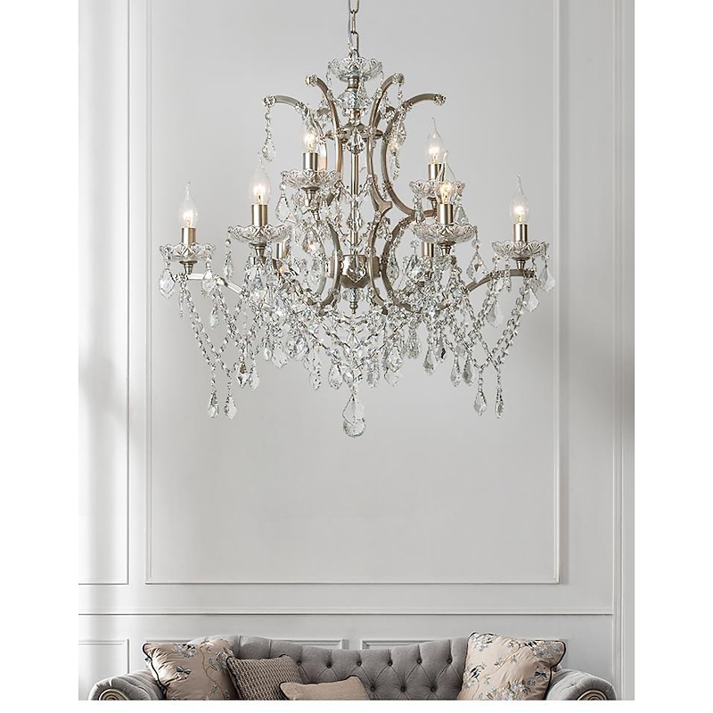 Chrome Silver Large Chandelier Lighting 43/61/68cm Wide Clear Crystal Tiered 12-Light Fixture for Dining Room House Foyer Entryway Kitchen Bedroom Living Room High Ceilings 110-240V 10
