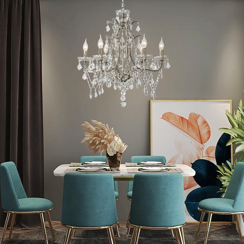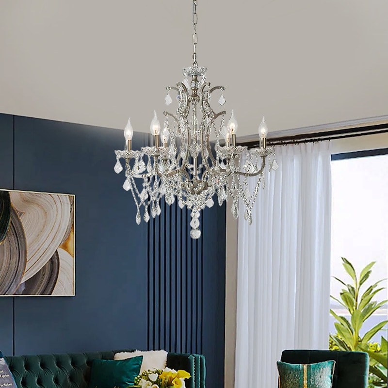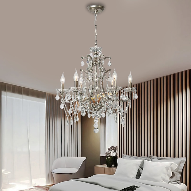 Chrome Silver Large Chandelier Lighting 43/61/68cm Wide Clear Crystal Tiered 12-Light Fixture for Dining Room House Foyer Entryway Kitchen Bedroom Living Room High Ceilings 110-240V 6