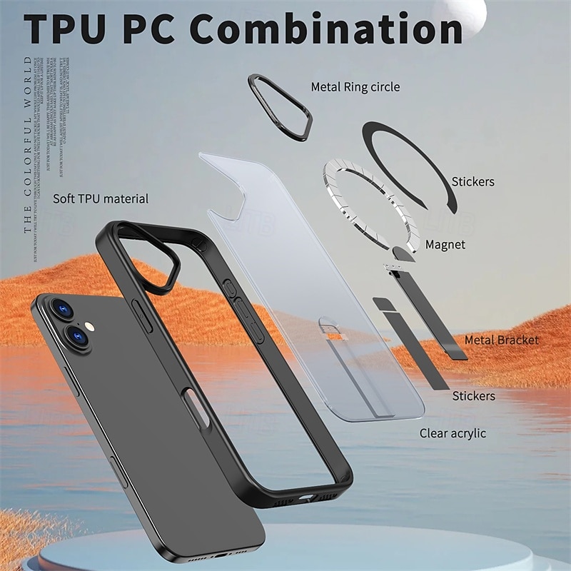 More information about Phone Case For iPhone 17 Pro Max 17 Air 16 15 14 Pro Max Plus 16e 13 12 Pro Max Back Cover Magnetic Adsorption with Stand Holder Translucent Support Wireless Charging TPU Acrylic PC