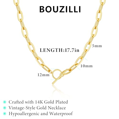 • Customer Satisfaction: At Bouzilli, we believe you deserve the royal treatment. Our chunky gold paperclip chain necklace with toggle clasp is committed to being your trusted embellishment for all your glamorous moments. Do not hesitate to contact us for any product issues,we'll provide a satisfactory response within 24 hours.