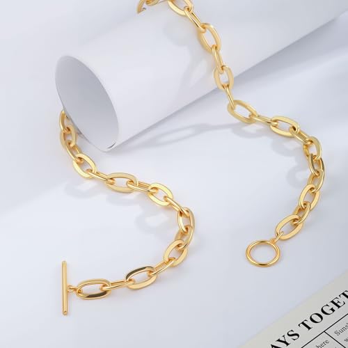 • Non Tarnish Chunky Gold Necklace: Don't worry about having to toss this chunky toggle necklace after a few wears or staining your clothes or neck due to tarnishing. Our chunky link necklace set is crafted with the latest eco - friendly electrophoretic coating which forms a protective barrier against oxidation. Also, our gold link necklace are lead-free, nickel-free, hypoallergenic, waterproof, suitbable for all-day wear.