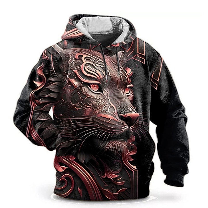 More information about Men's Graphic Animal Hoodie Hoodies Sweatshirt Fashion Daily Long Sleeve Hooded Vacation Sports Outdoor Holiday Red Blue Print Front Pocket Spring & Fall Designer