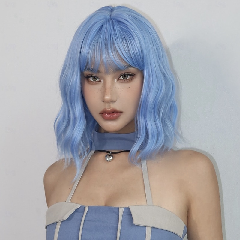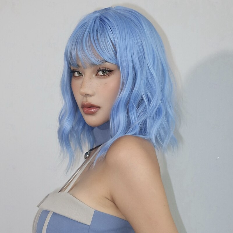 $24.99 - Cosplay Costume Wig Bouncy Curl Bob Neat Bang With Bangs Wig 14 inch Sky Blue Synthetic Hair Women's Elastic Adorable Comfortable Blue 2025. Shop for cheap Synthetic Trendy Wigs online? Buy at lightinthebox.com on sale today!