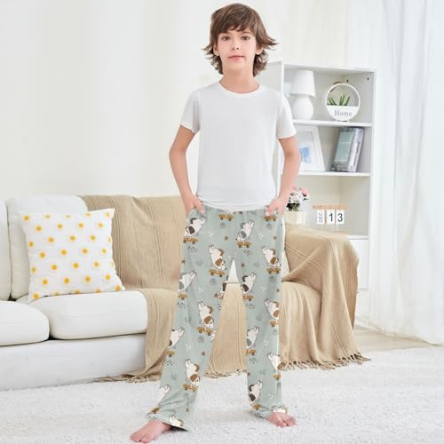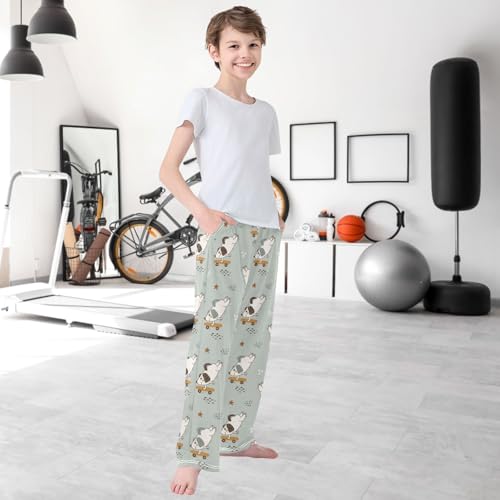Boy's Pj Pants Funny Poppy Dog Ride Skateboard Lounge Bottoms Elastic Waist Kids Joggers with Pockets Size 6-14 7