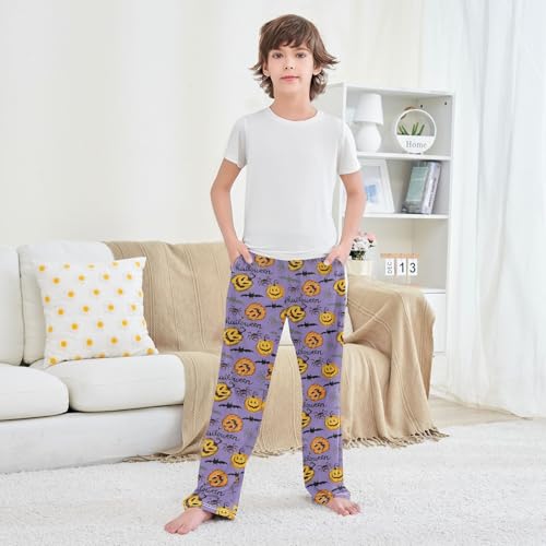Halloween Pumpkin Spider Bat Boys Long Pants Soft Trousers Elastic Waist Kids Lounge Bottoms with Pockets S-XL 4
