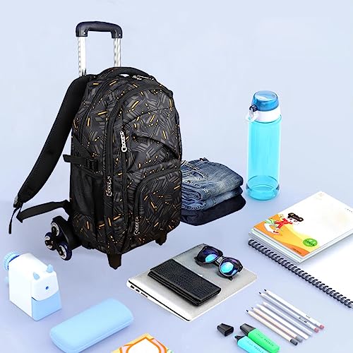 Rolling Backpack School Bag High-Capacity Backpack for Girl and Boy Rolling Trolley Bags Six Wheels Climbing Stairs (Yellow Stripe) 5