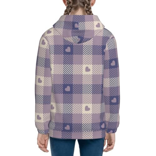 Heart Check Plaid Kid Hoodies Boys Zip Up Sweatshirts Girls Pullover with Pocket 4