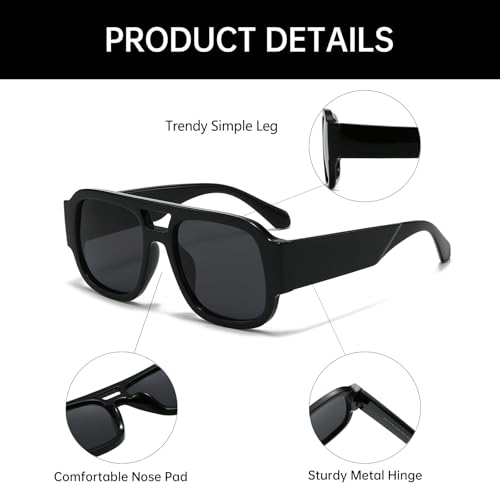 YAMEIZE Retro Style Double Bridge Pilot - Sunglasses for Women Men Vintage 70s Rectangle Sunglasses Square Shade Driving 1