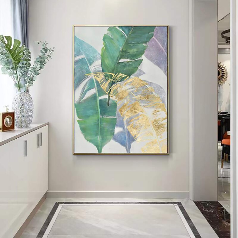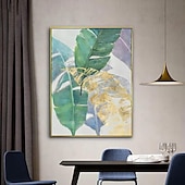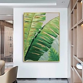 More information about Handmade Oil Painting Canvas Wall Art Decoration Modern Abstract Plant Flower Green and Gold Banana Leaf for Home Decor Rolled Frameless Unstretched Painting